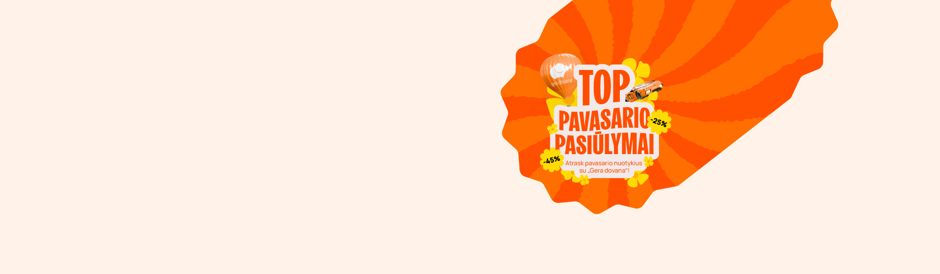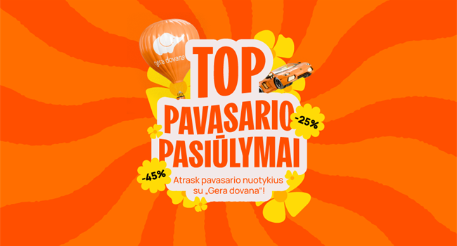 „Gera dovana“ – gerų emocijų parduotuvė. Skrydžiai, aktyvios pramogos, greitis ir adrenalinas, ypatingos vakarienės, masažai ir SPA centrai bei daugybė kitų originalių dovanų vos per 1 minutę.