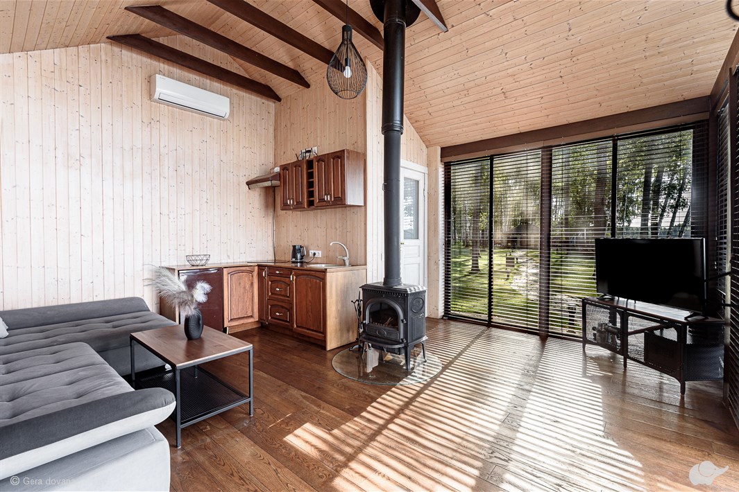 Nepamirštamos poilsio akimirkos jaukiame paplūdimio namuke su privačiu tiltu „Molėtai Resort“ svečių namuose! Minimalistinio stiliaus name pro langus ir nuo terasos atsiveria užburiantys Dūrių ežero vaizdai – nepaprastai gražūs bet kuriuo metų laiku... Nerūpestingas atotrūkis nuo kasdienos gamtos apsuptyje harmonizuos mintis ir į kūną sugrąžins energiją.