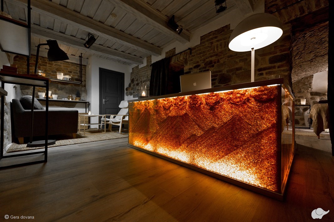 Masažo metu gulima ant gintarinio čiužinio. Po masažo laukia gintaro arbatos puodelis.