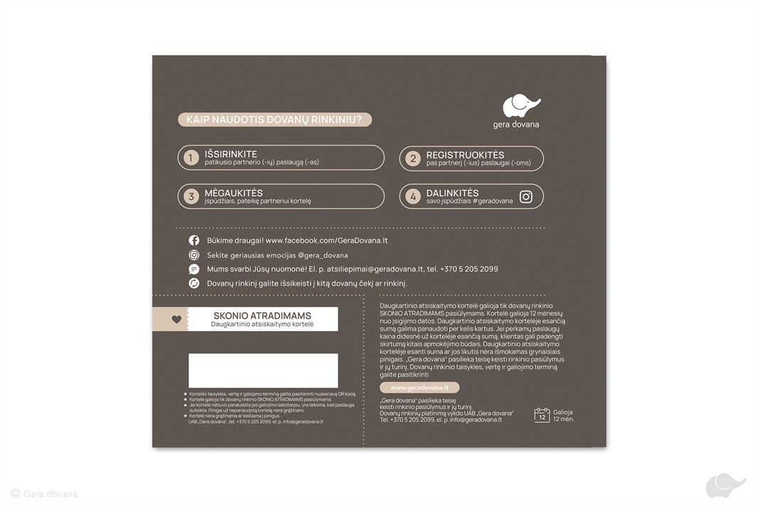 Gavę dovanų rinkinį, kreipkitės partnerių nurodytais kontaktais prie pasiūlymų ir rezervuokite tinkamą laiką norimai paslaugai.