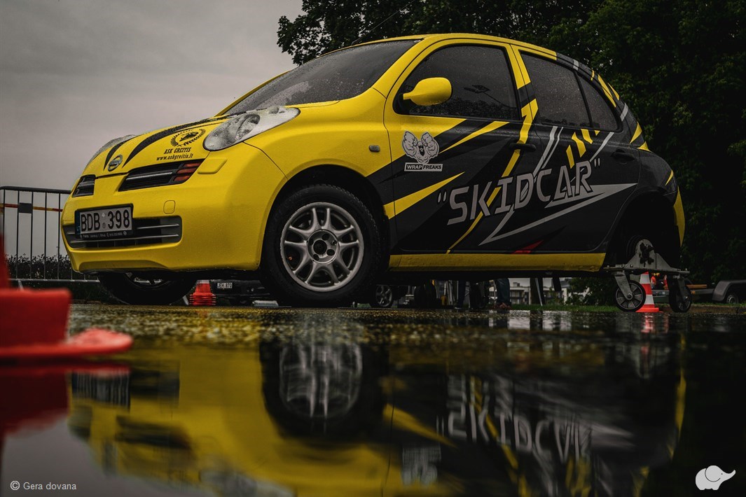 SKIDCAR – specialiai paruoštas automobilis, imituojantis automobilio slydimą. Ši vairavimo pamoka leis įgyti praktinių įgūdžių, kaip saugiai vairuoti ir suvaldyti automobilį esant sudėtingoms vairavimo sąlygoms – šlapiai, apledėjusiai ar padengtai sniegu kelio dangai.
