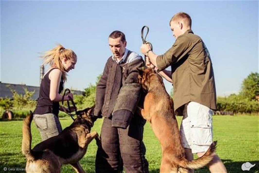 Ekstremalus sulaikymas su šunimi – tai tarnybinio šuns puolimas ir kandimas dalyvaujančiajam dėvint specialų kostiumą.