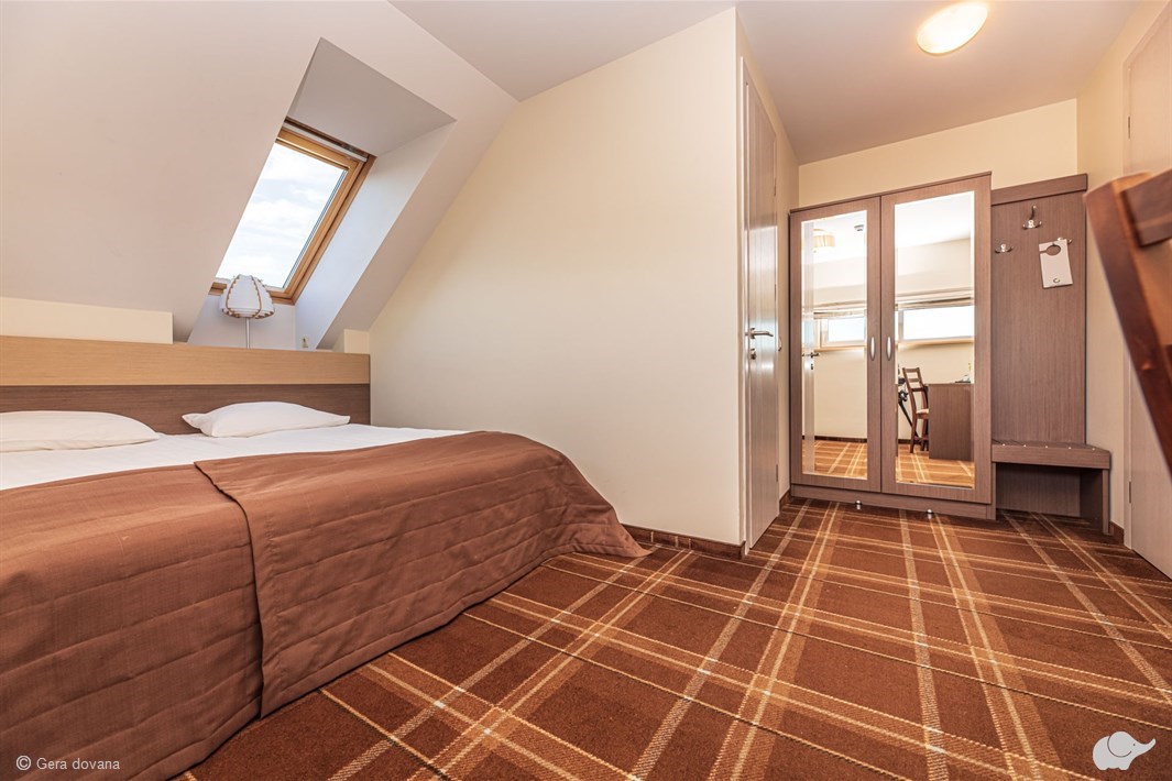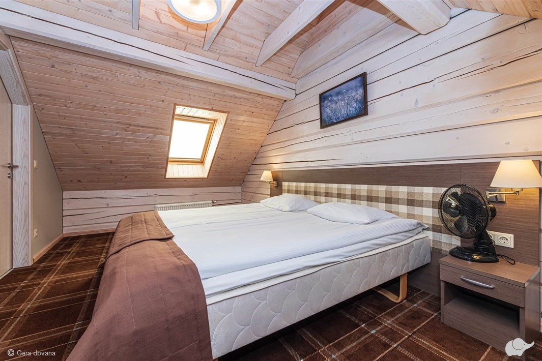 Jaukūs „Saulės“ vilos dviviečiai kambariai įkurti antrajame pagrindinio pastato aukšte.