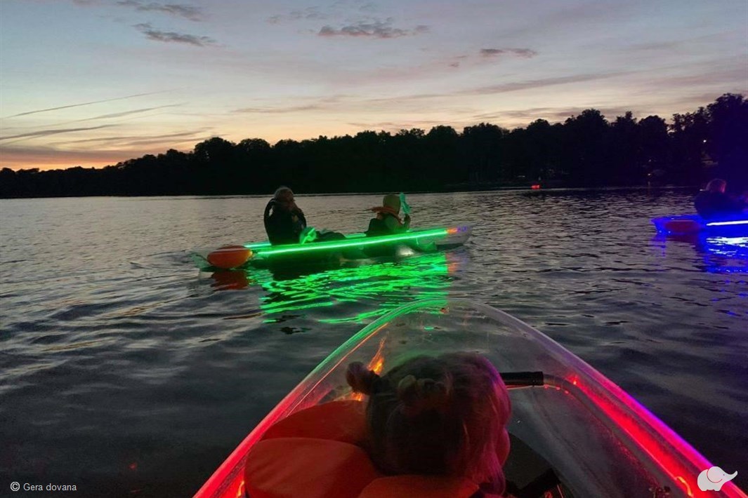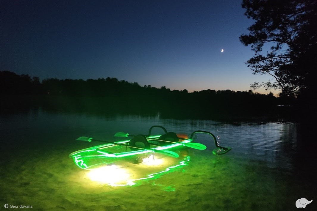 Šviečianti mėnesiena, gaivus nakties vėjas, Trakų pilies didybė ir paslaptingai šnarantis vanduo... Visa tai pajus ir išvys plaukiantieji skaidria baidare Galvės ežere! Ežero dugną nušvietę prožektoriai padės išvysti povandeninius turtus, o spalvingas foninis skaidrių baidarių apšvietimas suteiks dar daugiau romantikos susipažįstant su vandens gelmėmis.