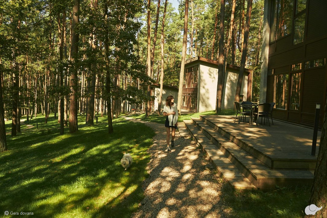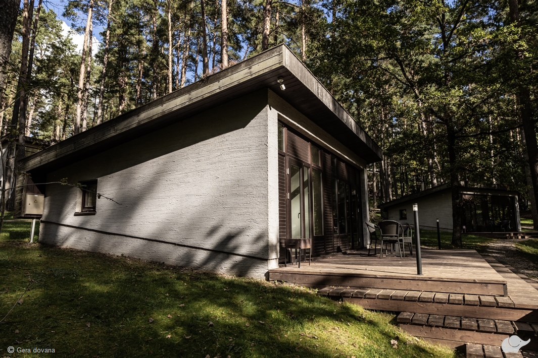 Draugų kompanijos ar visos šeimos laukia maloni nakvynė 2 aukštų keturviečiame namelyje su 2 atskirais miegamaisiais, terasa, virtuvėle bei židiniu, nepakartojamas vaizdas į pušyną bei ežerą, taip pat vandens ir pirčių malonumai: sauna, pirtys, du baseinai, iš kurių vienas – sūkurinis ir su vaizdu į pušyną. Ryte viešbučio restorane svečių lauks garuojantys pusryčiai iš specialaus meniu, o profesionalus aptarnaujantis personalas bus visada pasiruošęs suteikti geriausią viešnagės patirtį modernumo ir gamtos grožio vienovėje!