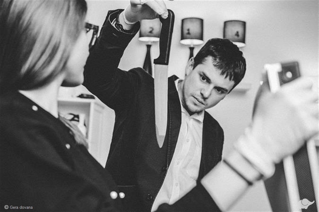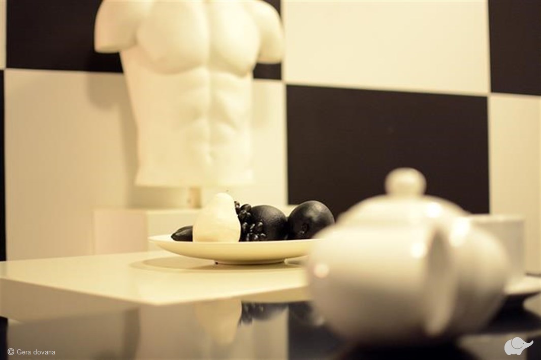 Bylos kaltinamasis – chirurgas, juodos ir baltos spalvų fanatikas. Būtent todėl šiame kambaryje kiekviena detalė, baldas ar dekoracija yra tik juodos arba baltos spalvos.