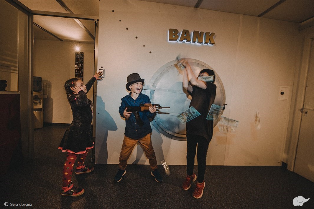 Tikriausiai ne kartą teko matyti filmus apie banko apiplėšimus, puikiai apgalvotus planus ir pabėgimus. Galvosūkių kambaryje „Banko apiplėšimas“ jaunieji dalyviai taps veiksmo filmų herojais – banko plėšikais. Jie savo kailiu patirs tai, ko ilgai nepamirš, ir turės sugalvoti planą B, kai įvykiai klostysis ne taip, kaip planavo.