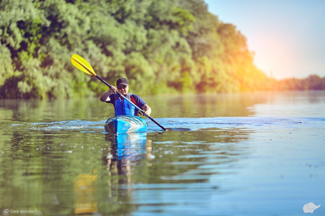 Puikiai jaustis padės naujos, patikimos, patogios, atsparios smūgiams dvivietės polietileninės baidarės ir gelbėjimosi liemenės.