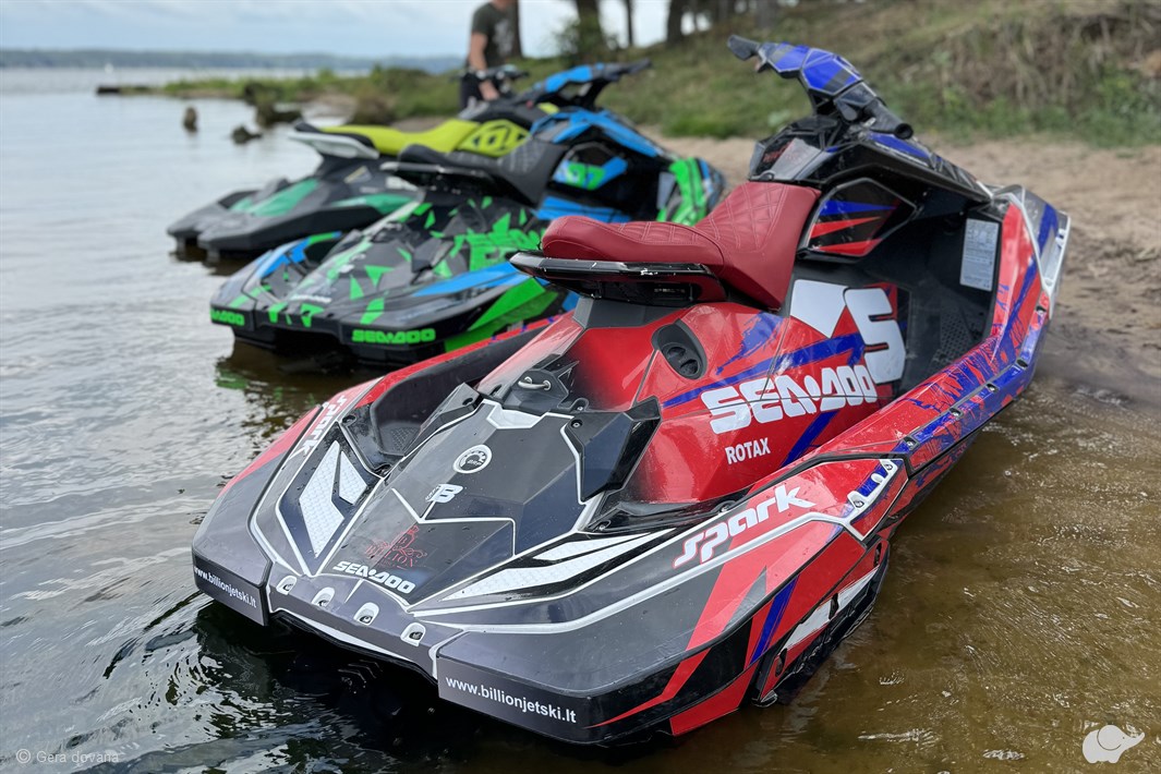 Vandens pramogų organizatorius „Billion Jetski“ kviečia leistis į nepamirštamą nuotykį – dviese pasiplaukioti vandens motociklu Elektrėnų mariose. Pramogautojai galės išbandyti paženklintą vandens motociklą SEADOO SPARK 2-UP arba SEADOO SPARK TRIXX. Šie modeliai įvairiapusiškai patobulinti, turintys įspūdingą korpuso grafinį apipavidalinimą ir padidintos galios variklį – išvysto greitį net iki 85 km/val. Vandens motociklas bus parinktas atsižvelgiant į atvykusiųjų poreikius – pirmą kartą sėdantys prie motociklo vairo galės išbandyti 2-UP modelį, o labiau patyrę vandens sporto entuziastai – TRIXX. Prieš pramogą atvykusieji išklausys instruktažą ir bus aprūpinti gelbėjimo liemenėmis.