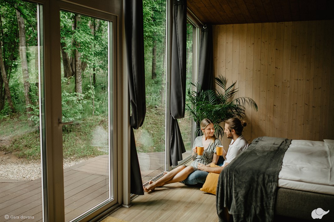 Poilsiautojai, apsistoję šiame namelyje, galės mėgautis net 26 kv. m apartamentais, kuriuose įrengta erdvi virtuvė, valgomasis, karališka („King Size“) lova, vonios kambarys su dušo kabina. Namelyje yra oro kondicionierius ir šildymo sistema. Romantiškai vakarienei šilumos suteiks krosnelė. Namelį gaubia erdvi terasa, kurioje vakare galima mėgautis ofuro vonia. Privačiame kiemelyje nėra EKO baseino.