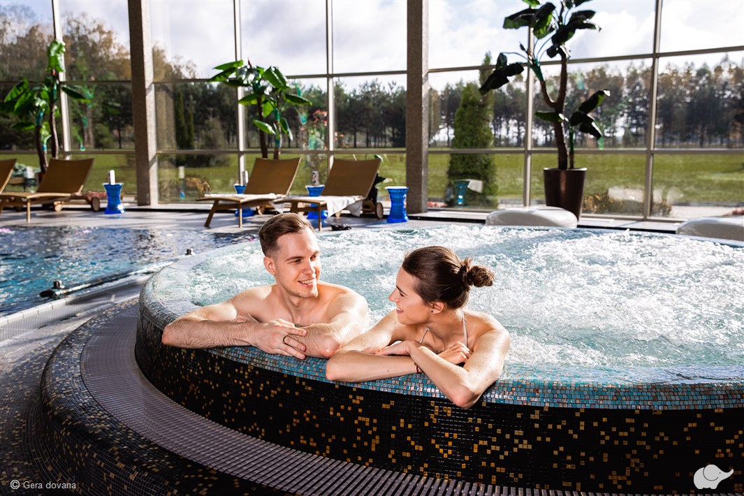 Viešnagės metu poilsiautojai galės apsilankyti vandens ir pirčių erdvėje – čia įrengtas 25 m ilgio plaukimo baseinas, pramoginis baseinas su kaskadomis, masažinėmis įlankomis ir povandeniniais geizeriais, sūkurinė vonia, sauna bei pirtys: infraraudonųjų spindulių, garinė ir „Kelo“ rąstinė.
