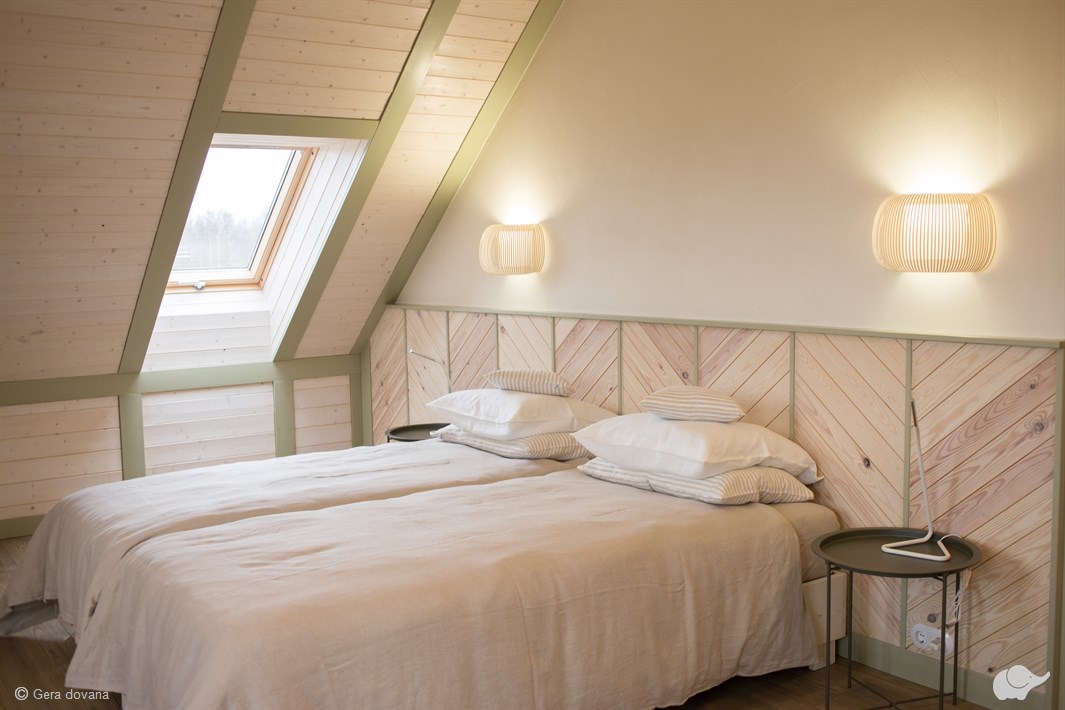 Anykščių rajone esančios vietos unikalumas slypi Šveicarijos Alpių stiliaus atostogų namuose, kurių antrajame aukšte – išskirtinio interjero kambariai, o pirmajame įrengta erdvi jauki svetainė su židiniu, kur atvykusieji gali šiltai leisti vakarus ir atsipalaiduoti.