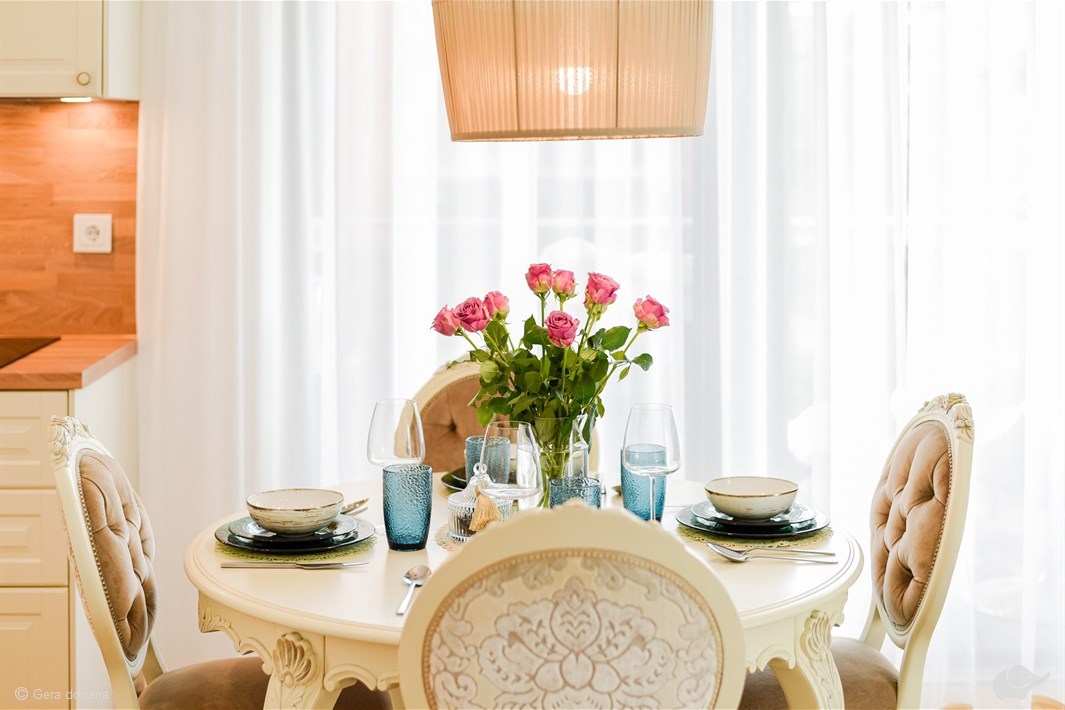 Svečiai gali rinktis vieną iš dviejų prabangiai įrengtų apartamentų: dviejų kambarių su terasa pirmame aukšte arba dviejų kambarių su erdviu balkonu antrame aukšte.