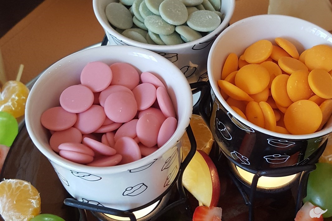 Dovanos gavėjams bus patiektas įvairių šviežių vaisių ir zefyrų vėrinukai, skirti mirkyti į braškinį, apelsininį ir citrininį šokoladą. Šokolado fondiu – tai gurmaniška šventė, kurią papildys šokoladinė kavinės aplinka ir visa šeima prie stalo!