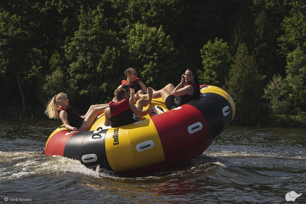 Katerio tempiama padanga sukasi 360 laipsnių kampu, tad tai naujovė, ne juokais susuksianti galvą visiems, kas tik ant jos įsitaisys. Platus padangos skersmuo leidžia vienu metu ant jos įsitaisyti net 6 žmonėms ir mėgautis kone karusele ant vandens!