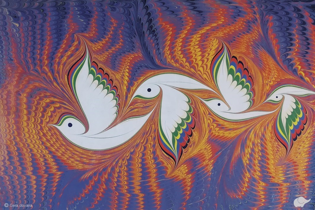UNESCO kultūros paveldo saugoma tapyba ant vandens ebru – tai meno forma, nepaliekanti abejingų dėl nesunkiai gaunamo puikaus rezultato, neįprasto spalvų ir formų žaismo. Piešimas atliekamas specialiame inde ant sutirštinto vandens teptuku ištaškant foną, o vėliau specialiomis lazdelėmis formuojami įvairiausi ornamentai. Tada kūrinys nuo vandens paviršiaus perkeliamas ant popieriaus lapo.