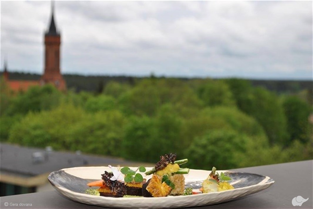 Kas gali būti nuostabiau už romantišką vakarienę padebesiuose? Viešbučio „Lietuva“ 8-ajame aukšte įsikūrusiame vieninteliame kurorte panoraminiame restorane „Keturi vėjai“ svečiai išgyvens nepakartojamas akimirkas, grožėsis kvapą gniaužiančiais Druskininkų pušynų vaizdais ir skanaus išskirtinius patiekalus.