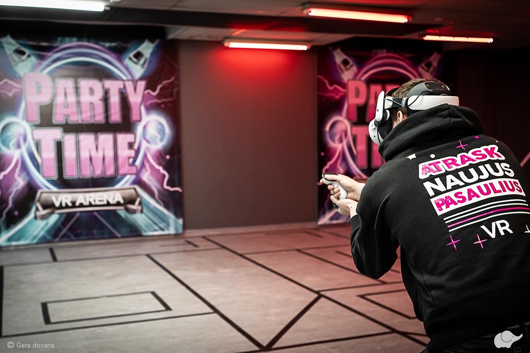 VR arena PARTY TIME – tai Tauragėje įsikūrusi moderni virtualios realybės erdvė, kurioje žaidėjai kviečiami pasinerti į nuotykius, išbandyti kovinius ir komandinius žaidimus. Viskas vyksta erdvioje arenoje, kurioje nėra laidų, tad čia galima laisvai judėti: bėgti, slėptis, šaudyti ir tyrinėti. Visi pramogautojai aprūpinami specialiais virtualios realybės valdikliais ir akiniais, taip pat suteikiama galimybė pakeisti savo avataro išvaizdą. Ir tai dar ne viskas – kol vieni pasineria į kovas virtualiame pasaulyje, kiti gali nemokamai išbandyti arkadinius žaidimų automatus!